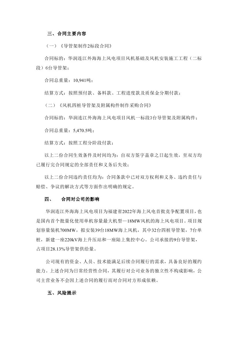 公司承接的9台导管架, 占项目28.13%导管架供给量。公告原文如下: