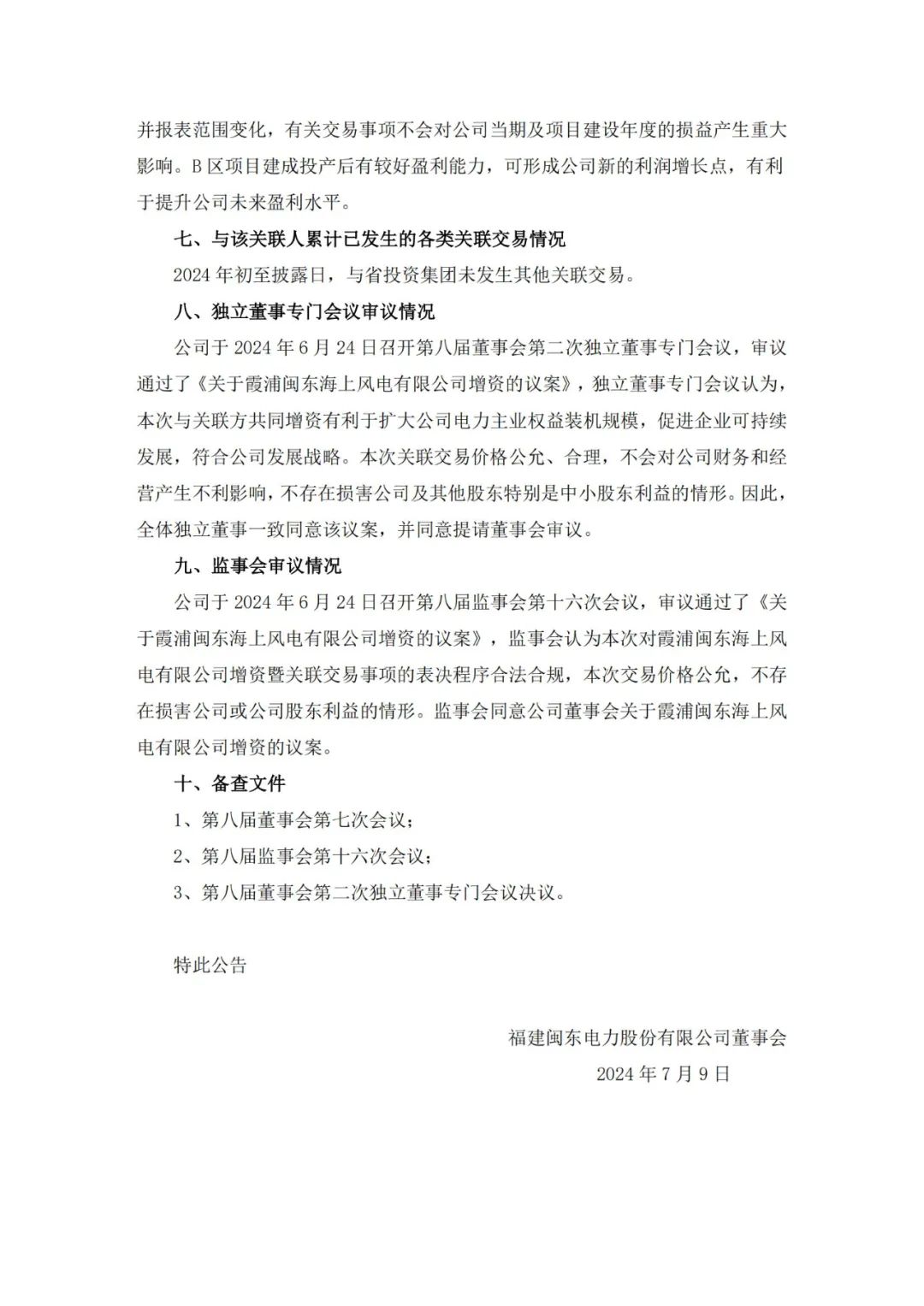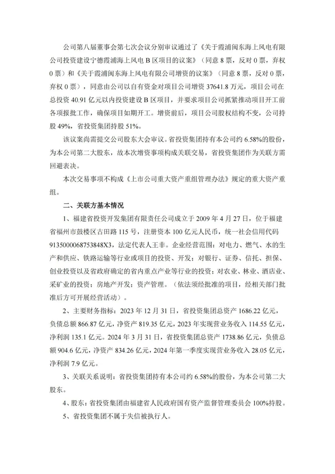 7月9日,福建闽东电力股份有限公司(简称:闽东电力)发布关于增资霞浦闽东海上风电有限公司投资建设宁德霞浦海上风电B区项目暨关联交易的公告。