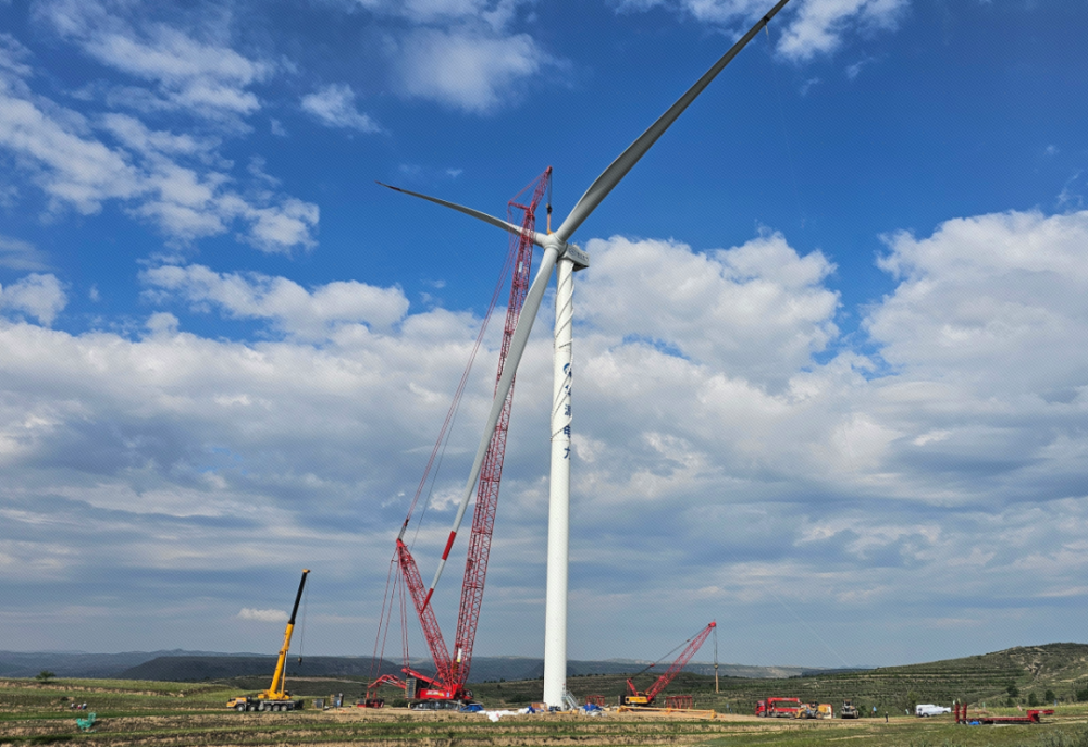 近日,尚义小蒜沟项目首台机组完成吊装。