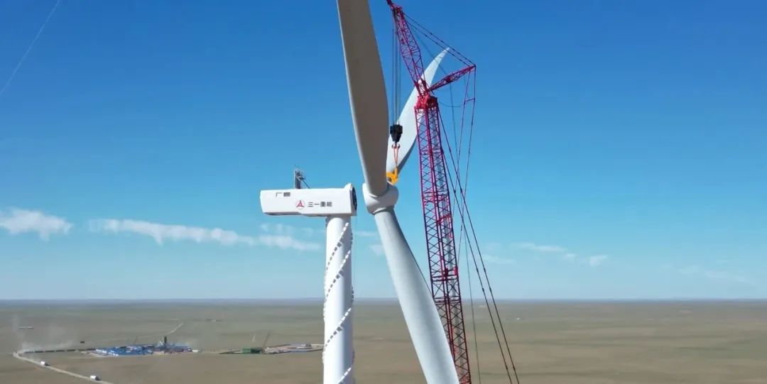 国电投中卫香山风电场总装机容量148.5MW,原来的99台1.5MW的老旧风机,改造前已服役超15年,机组发电效率、稳定性早已大不如前。2022年9月风场启动“以大代小”等容更新的升级改造,在总装机容量不变的前提下,99台小风机摇身一变,换成24台三一重能6.25MW的“巨无霸”大风车。叶轮直径由原来的82米增长至193米,塔筒增高至105米,在同等的风资源条件下,机组捕风能力跨越式升级,实现用更少的风机发更多电。