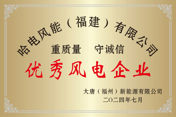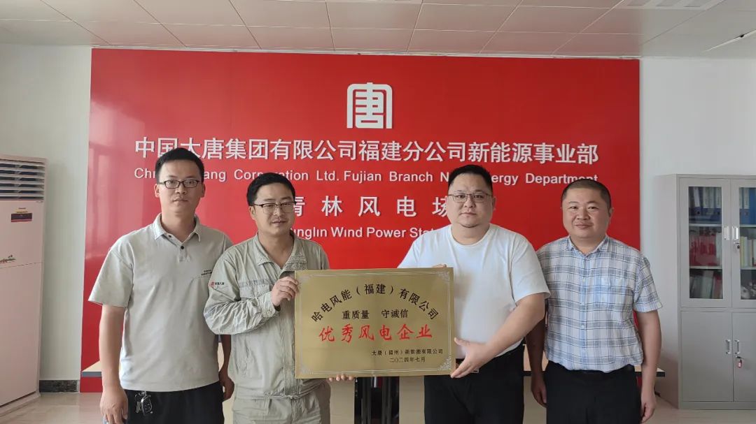 2024 年 7 月 12 日,大唐(福州)新能源有限公司(以下简称“大唐福州”)向哈电风能(福建)有限公司(以下简称“福建公司”)授予“重质量守诚信优秀风电企业”荣誉奖牌,高度认可了福建公司在“重质量、守诚信”方面的卓越服务能力。