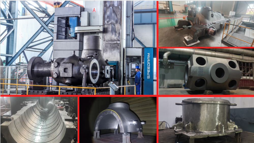 通裕重工铸钢事业部致力于“打造一流团队、铸造一流品质、提供一流服务”,在引进以国内铸钢领军人才、全国青联委员(科技界别)苏志东为核心的铸造技术团队基础上,广泛吸引业内高精尖人才,已组建成一支视野广、技术强、冲劲足的大型高端铸钢技术团队。团队有多年的大型高端铸钢件研制经验,涵盖炼钢、铸造、材料处理、 检测及生产管理等方面。铸钢事业部致力于为客户提供高端装备配套大型铸钢件,涵盖铸造、精加工及装配一体化服务,市场涵盖能源装备(水电、核电、火电、燃气发电、储能等)、海工石油、矿山机械、冶金机械等大型高端装备领域,客户包括哈尔滨电气、东方电气、上海电气、沈鼓集团、美卓公司等行业头部企业,产品材料涵盖不锈钢、耐热钢、高强钢、低温用钢等,目前最大可生产单重150吨铸钢件。通裕重工铸钢事业部紧跟科技前沿发展脚步,软硬件配置国内一流。按《智能制造能力成熟度模型》中三级等级以上要求打造国内及业内智能制造标杆项目,实现关键业务的数字化管理及制造过程的透明化管理。同时结合专业铸造模拟软件MAGMA(凝固、充型、应力及热处理)及热处理模拟软件FOGE,提高铸件质量的稳定性及生产管控的精细化水平。在关键设备配置方面,炼钢工序配置有20吨/40(60)吨/150吨的EAF+VOD+LF的生产线;造型工序配置有108*16*6m的大型铸钢件造型地坑及350吨行车及具备铬矿砂打印能力的砂型3D打印机;精整工序按照最新环保要求设置气刨、打磨、焊接一体化的除尘作业单元、检测配有6/9Mev切换的直线加速器及Co-60/Ir-192射线探伤仪、3D扫描仪、照相检测及高温持久检测等设备;铸钢加工配有大型PAMA龙门铣等50余台大型数控加工设备。