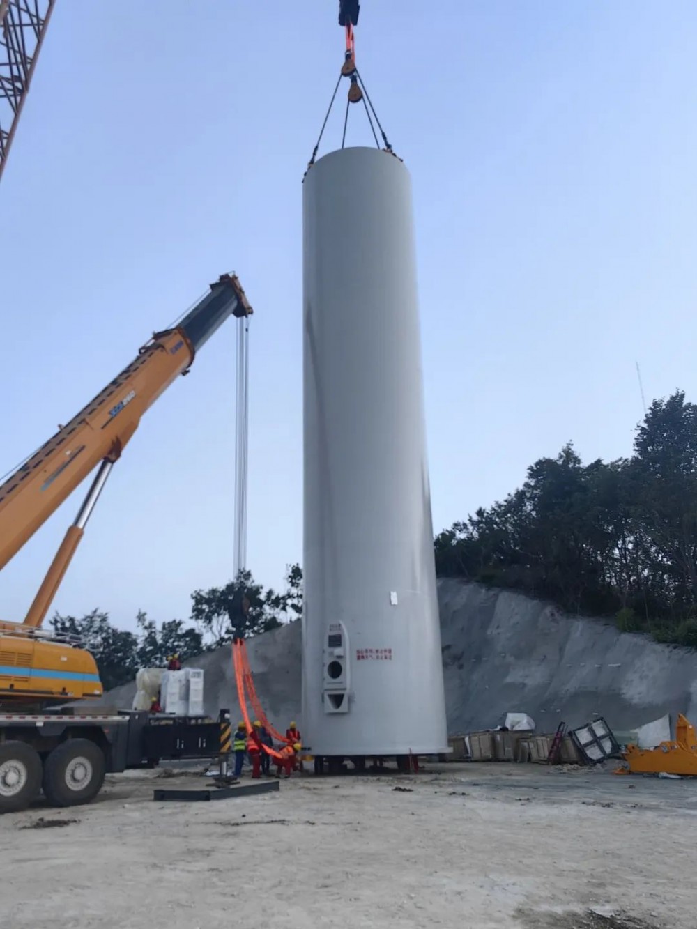 为保证该项目首套塔筒顺利吊装,大连公司积极筹划、精心组织、多措并举。一是大连公司积极对接项目业主,严格按照业主的吊装节点制定供货计划,保证吊装需求;二是与运输单位密切交流,提前对运输路径进行了详尽的勘查与评估,综合考虑了道路条件、桥梁承重、转弯半径等多方面因素,确保塔筒顺利运输至机位;三是安排专人进行售后服务工作,全过程服务确保首套塔筒顺利吊装。