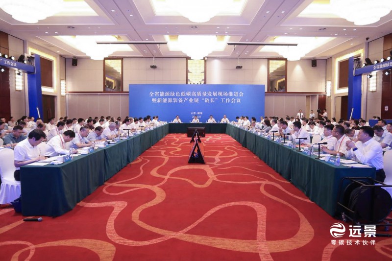 7月18日,山东省能源绿色低碳高质量发展现场推进会暨新能源装备产业链“链长”工作会议在威海举行,山东省委常委、副省长张海波,省发改委主任孙爱军,威海市委书记闫剑波,省政府副秘书长牟书岭,省相关厅局、各地市常务副市长,中央在鲁电力企业负责人等120余人出席。作为最早扎根山东的新能源企业,远景集团高级副总裁田庆军受邀作为企业家代表发言,从新型能源系统视角下的风光规划、储能开发、绿电消纳等角度,为山东新能源产业发展建言献策。