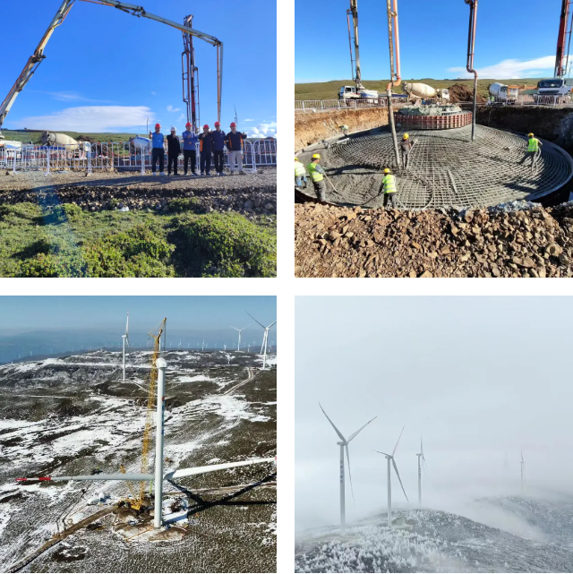 自项目正式开工以来,项目面对高海拔地区复杂多变的地形、恶劣的天气状况以及严格的技术要求,凭借精湛的技术和顽强的斗志,攻克一个又一个难关。2023年7月8日首台风机基础浇筑完成、2023年8月15日全部风机浇筑完成、2023年8月31日首台风机吊装完成、2024年5月17日全部风机吊装任务完成。
