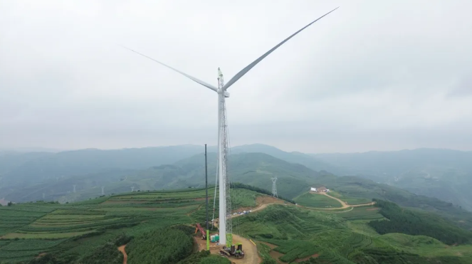 随着吊装现场对讲机里传来:“对接成功”!重达110余吨的风机叶轮组件在110米高空与机舱精准对接完成,风机安稳矗立、直冲云霄,与天地相接、与白云相伴。7月20日,贵州金元威宁县么站50兆瓦风电场首台风机成功吊装,成为了乌蒙山脉上又一醒目的绿色能源新地标。