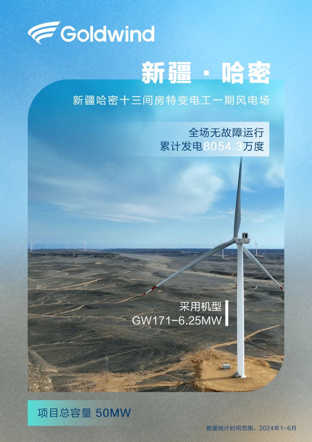 2024年已经过半,盛夏之风拂过茫茫戈壁、漫漫山野与蔚蓝海洋,金风科技遍布各地的风电机组也以昂扬姿态“化风为电”,为各地持续输送绿色电力。