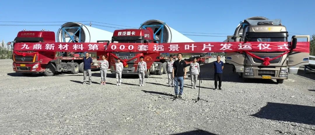 7月24日,甘肃九鼎风电复合材料有限公司第1000套远景叶片正式发运。
