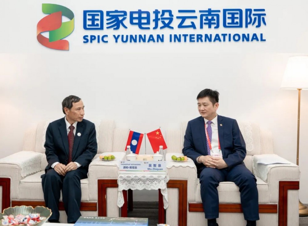 吴智泉欢迎通帕·英塔翁一行到访云南国际展区,他表示,云南国际积极响应“一带一路”倡议,服务中老命运共同体建设,云南国际的海外项目具有鲜明的特色,始终坚持生态优先、绿色发展,全力建设数智化环境友好型清洁能源,坚持技术创新,积极推进项目属地化管理,打造“民心工程”。希望双方加强合作,共同推动中老命运共同体绿色能源服务,助力老挝打造“东南亚蓄电池”。