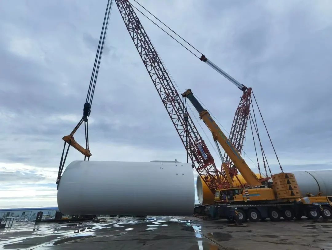 7月26日,由中国水电四局大连公司承制的大连市庄河V海上风电项目首套底段塔筒顺利完成翻身。