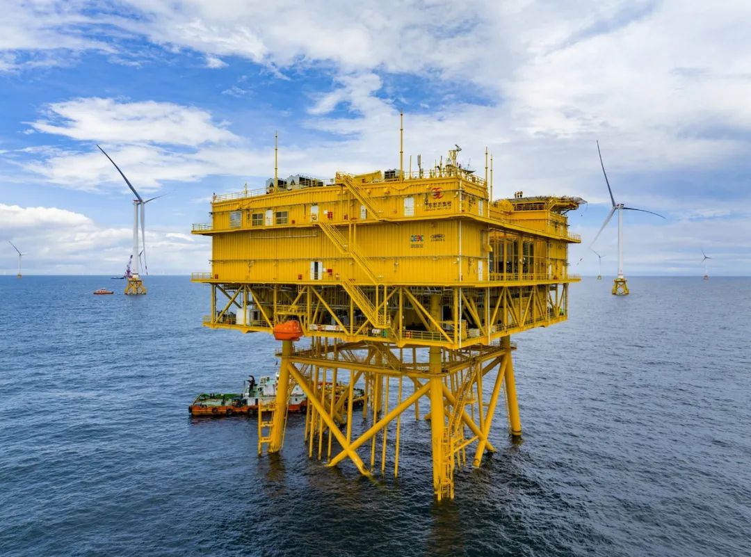 粤电阳江青洲一海上升压站上部组块重约6450吨,装机容量1000MW,电压等级500kV,采用四层布置,最大平面尺寸为55米×45米,是目前世界交流电压等级最高、单体重量尺寸和重量最大的海上升压站。在没有设计、建造、上船方面可借鉴和模仿的前提下,南通振华重装通过自主创新,顺利完成了项目交付,掌握了超大型升压站领域具有竞争力和影响力的关键技术,为中国深远海海上风电的发展起到重要的引领和示范作用。