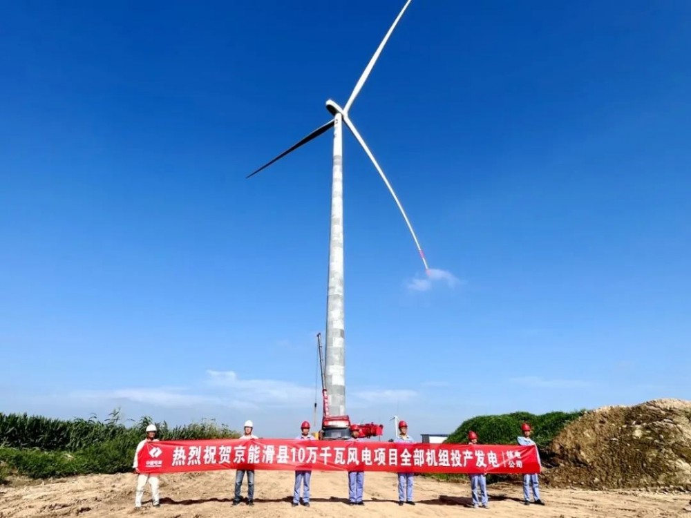 2024年7月31日22时58分,京能滑县10万千瓦风电项目全容量并网发电。项目总投资4.32亿元,共建设16台单机6.25兆瓦的风电机组、1座110千伏升压站及送出线路等设施。