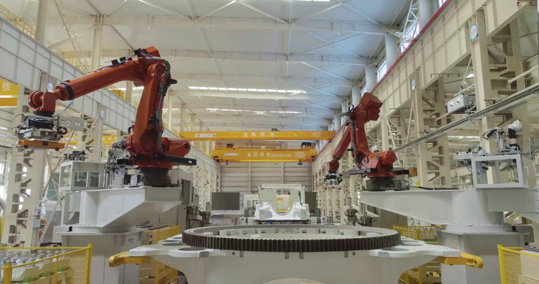 在5G技术与工业互联网的结合应用方面,金风科技也已经迈出实践步伐。2022年,金风科技达坂城零碳数字化工厂正式落成,并在风电行业内首次实现了5G工业互联网的全覆盖和应用,实现了物料自动配送、质量自动检测、数据实时采集与全过程追溯的自动化和无人化。通过创新投入机舱和叶轮两条脉动式流水线,实现了大型风机装配过程从传统岛式作业人工装配的方式向制造智能自动化、信息化和数字化过渡。实现风电机组装配各工位生产节拍缩短一半以上,生产周期缩短三分之一以上,大大提高了生产效率。打造了5G技术支撑工业互联网应用的成功范例。