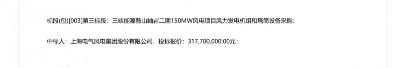 三标段:三峡能源鞍山岫岩二期150MW风电项目风力发电机组和塔筒,电气风电作为第一中标人中标150MW。