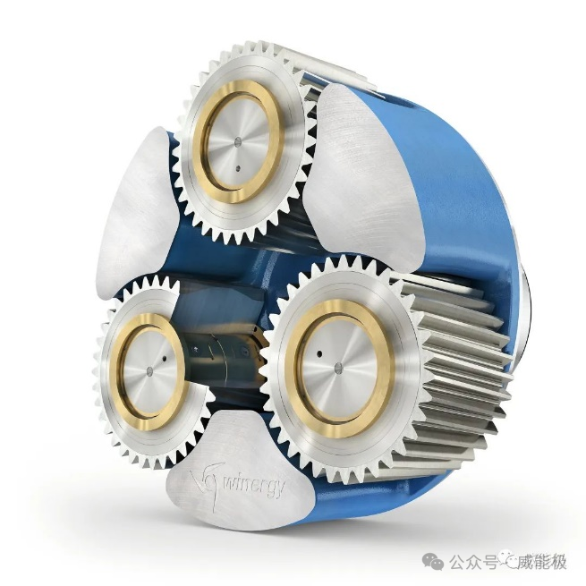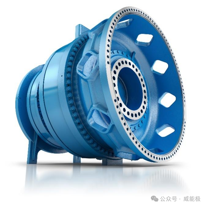 威能极齿轮箱采用全集成和半集成驱动链方案,实现了更高的功率密度。功率密度的提高使风力发电机能够在更小的空间内产生更大的扭矩,从而降低了风电整机的整体造价和风电场早期投资。其中,低速级采用弗兰德联轴器、多行星轮配置滑动轴承、发电机与齿轮箱集成的驱动链方案是行业内解决度电成本问题的经典案例。