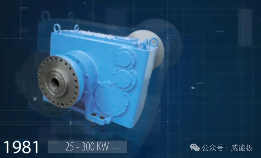 1981年,威能极推出风电专用齿轮箱,开创了平行级齿轮箱由传统的减速箱到增速箱应用的先河,为风电行业从几十千瓦级到百千瓦级的驱动问题找到了当时更为成熟的解决方案。