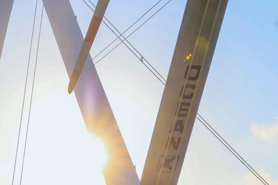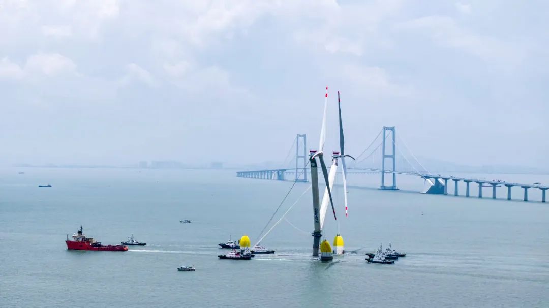 值得一提的是,“明阳天成号”实现了多项全球首创。其浮式基础为全球首次采用抗压能力达到115兆帕以上超高性能混凝土材料制造而成,这种混凝土材料强度达到普通混凝土的4倍左右。浮筒采用的“玻璃纤维外壳+XPS芯材+防护涂层材料”方案亦为世界首创,突破了传统浮筒采用纯钢结构或钢混结构的限制。此外,翼型双塔筒、双主机、双风轮的设计,以及拉索系统的应用均为全球首创。