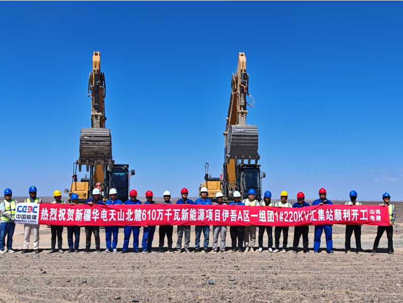 近日,中国能建山西电建承建的新疆华电天山北麓基地610万千瓦新能源项目二标段220千伏升压站正式开工。
