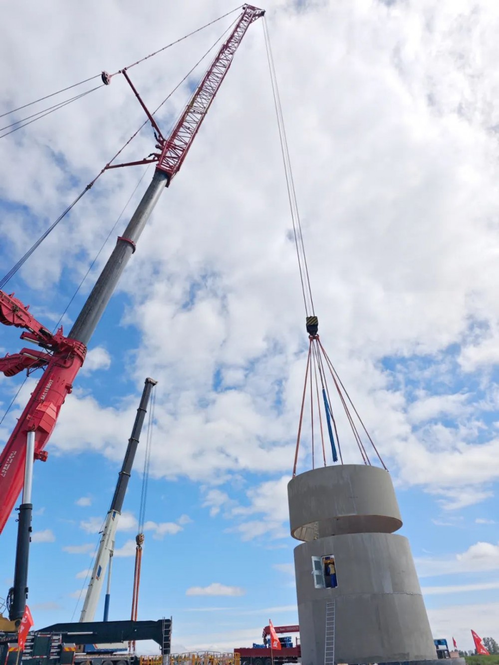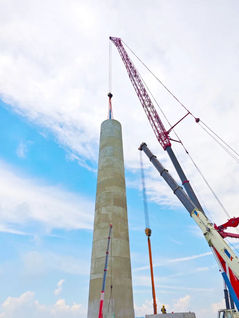 本次吊装涉及的混塔段总高度133.66米,单段最大重量63.48吨。面对交通不便、施工条件复杂、气候多变以及大型设备吊装安全风险高等困难,项目团队多次召开吊装工作研讨会,针对大件运输及吊装施工等关键环节开展了详细的策划、论证、现场实勘和试验工作,同时对所有参与吊装作业人员进行了详尽的安全技术交底,展现出良好的统筹和执行能力,最终保证此次吊装作业顺利完成。