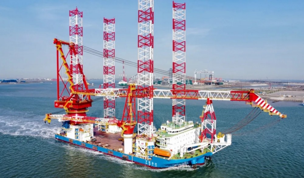 “亨通海悦号”平台从核心设备到配套部件国产化率超80%以上,配有1600吨绕桩式全回转超强起重机,堪称新一代大型风电施工利器。另配备4000平方米超大面积甲板,可变载荷超过8500吨,作业水深可达70米的四桁架桩腿和自动升降系统、全电推进系统、DP2定位系统等,具备单机最大功率20兆瓦海上风电机组安装能力,具有绿色节能、设备先进、作业效率更高、安全性能更高等多重装备系统优势,是国内领先的第四代自航自升式深远海大型风电安装平台。