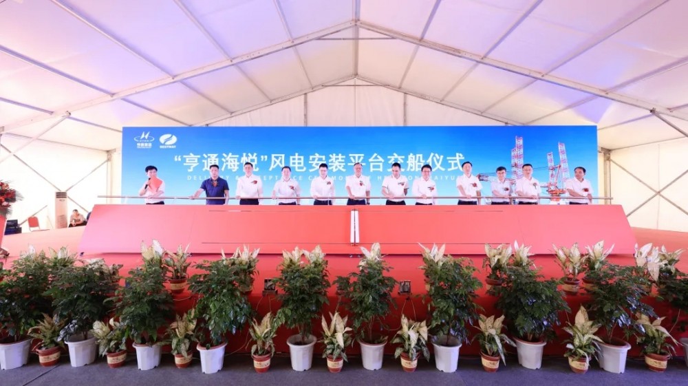 8月9日上午,“亨通海悦号”大型风电安装平台交船仪式在南通隆重举行,中国船级社江苏分社副总经理衡霖,天海防务董事长何旭东,江苏大津重工总经理王友军等,以及南通海事局、常熟海事局,平台相关研发设计、总包合作单位、客户代表等共同见证这一历史性时刻。亨通集团副总裁、亨通光电董事长崔巍,亨通电力产业集团总裁孙中林等出席仪式。