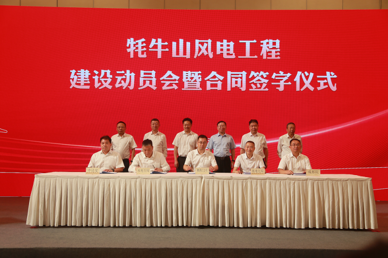 近日,四川省规模最大风电项目——牦牛山风电工程建设动员会暨合同签字仪式在成都举行。中国电建成都院党委副书记、总经理张世殊代表公司发言,并与雅砻江公司党委书记、董事长郭绪元见证签约。雅砻江公司党委副书记、总经理孙文良主持仪式,成都院副总经理李明与雅砻江公司副总经理张鹏代表双方签约。