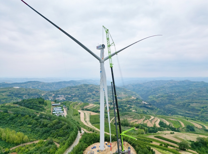 该项目位于甘肃省天水市秦安县王铺镇境内,总装机容量50兆瓦,安装10台单机容量为5兆瓦的风电机组,轮毂中心高度110米,叶轮直径195米,机舱重122吨。