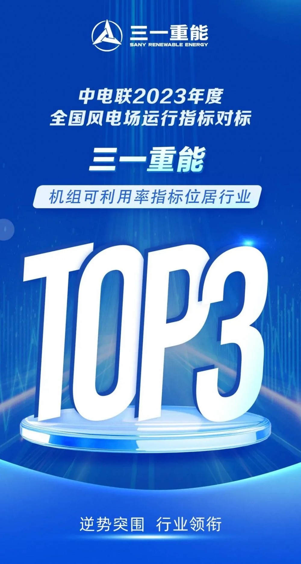 近日,中国电力企业联合会(以下简称:中电联)正式公布了2023年度电力行业风电运行指标对标结果。在全国区域机组可利用率指标最优主机厂榜单中,三一重能逆势突围、闯入前三。曾经世人眼中的行业“黑马”正在用每年不断刷新的纪录,成为中国风电的“常青树”。