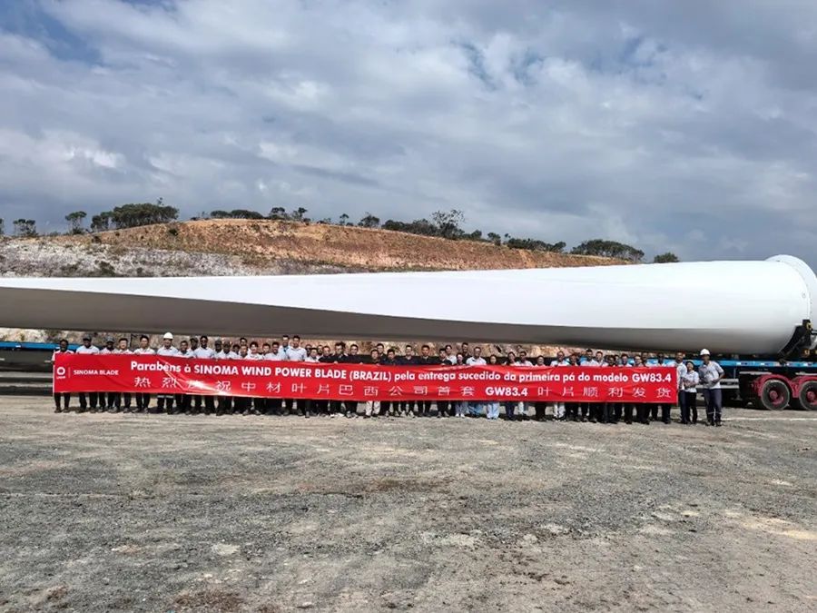 8月23日,中材科技(巴西)风电叶片有限公司(以下简称“中材叶片巴西公司”)生产的首套GW83.4叶片顺利装车发运,标志着中材叶片巴西公司实现了从产品试制到批量生产发运的阶段性目标,在国际化征程中迈出坚实一步。