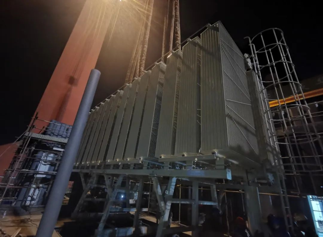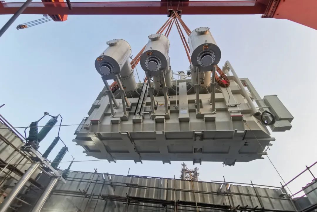 8月29日,振华重装承建的玉环2号海上升压站在大基地完成工频主变压器及其散热器吊装关键节点。
