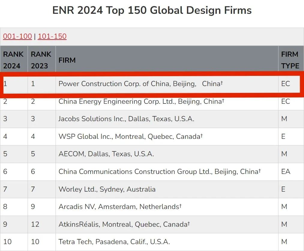 中国电建分别位列第1位和第15位