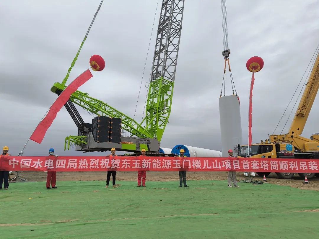8月31日,由酒泉新能源公司承制的东玉新能源玉门楼儿山项目首套塔筒顺利吊装。