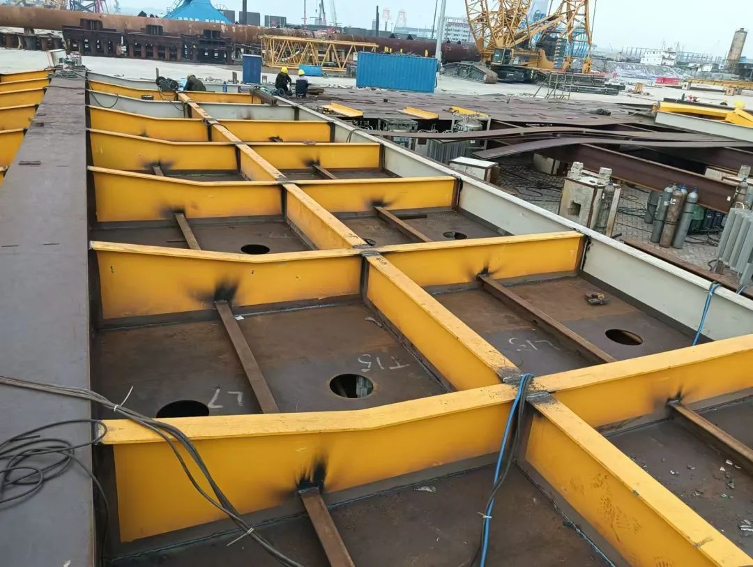 华电阳江三山岛六海上风电项目位于广东省阳江市南侧海域,其年设计发电量高达16亿千瓦时。阳江公司此次承接沉桩定位架建造项目,是一款专为钢管桩沉桩施工量身打造的施工设备,以其精准定位能力,成为桩基施工准确性与安全性的关键。它能够依据精密的设计参数,将桩体丝毫不差地安置于预定位置,为整个海上风电场的稳固基础奠定了坚实的基础。