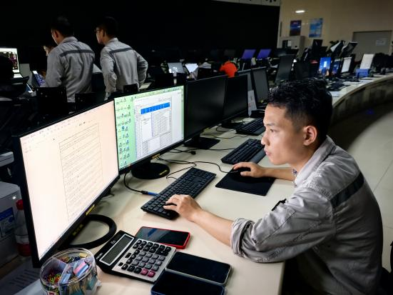 ▲9月6日晚21时,徐闻风电盈和海风场值班成员应急处置突发事件(王泽源摄)