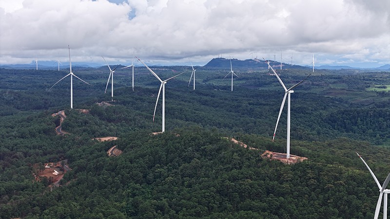 当地时间9月1日,中国电建承建的老挝孟松600兆瓦山地风电项目顺利完成第100台风机的吊装工作,为按期推进项目全容量并网交付目标打下坚实基础。