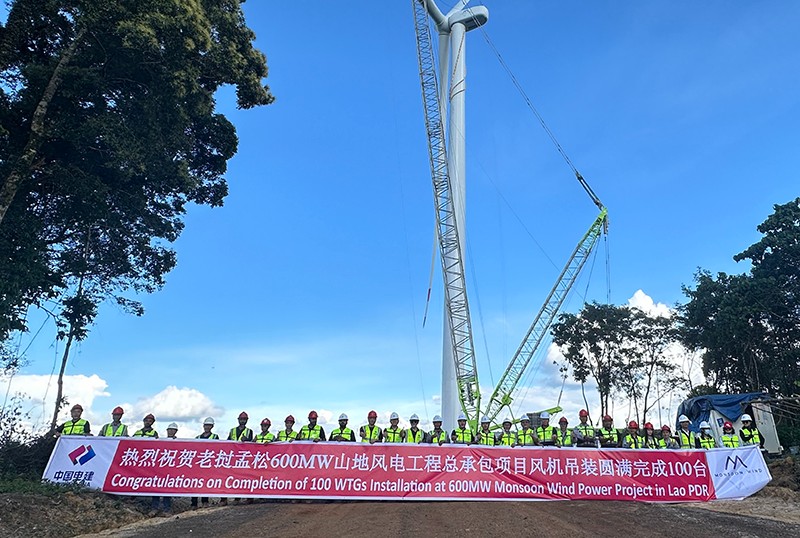 老挝孟松风电项目是老挝首个风电项目,也是东南亚单体最大的风电项目。自2023年3月正式开工以来,项目一直受到老挝政府、社会各界的高度关注。成功完成100台风机吊装不仅是项目履约的重要里程碑,也是老挝新能源发展取得的重要成果,将进一步推动老挝对可再生能源的开发利用,对老挝实现能源电力转型具有重要意义。中国电建项目团队将全力推进项目高质量建设,确保项目按期顺利投产发电,为助力老挝打造“东南亚蓄电池”贡献电建力量。