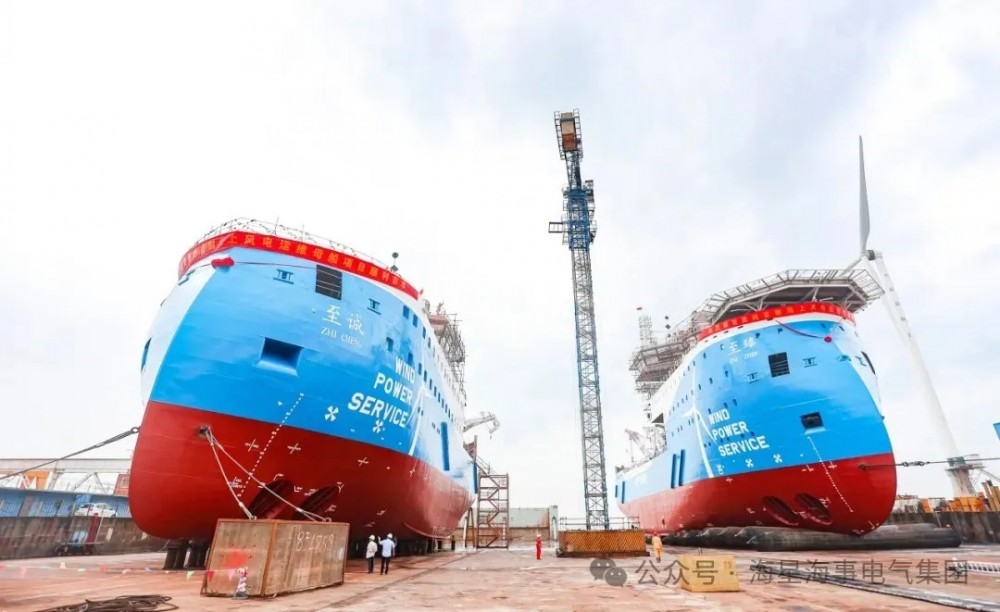 上海振华重工(集团)股份有限公司为电气风电建造的100人和60人两艘风电运维母船是亚洲风电整机商首次在海上风电运维领域引入集高效运维、绿色运维、智能运维、安全运维于一体的专用SOV(海上风电运维母船)。