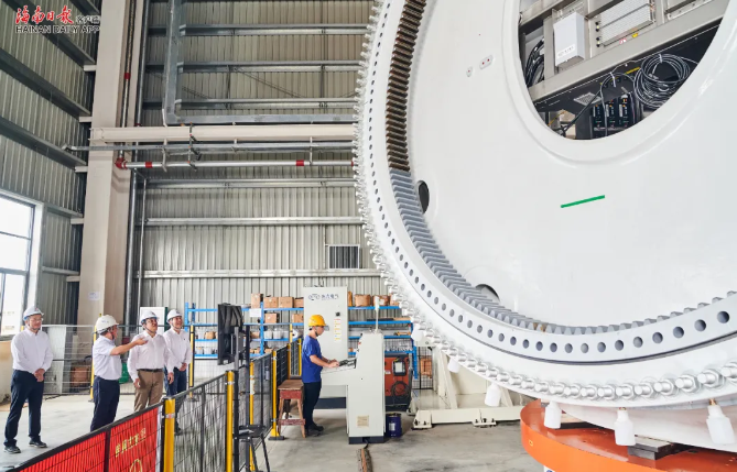 东方电气海南洋浦风电基地位于海南省儋州市,是海南省2023年省级重点(重大)项目之一,依托自贸港政策与区域优势,致力于打造风电装备制造、风氢储一体化等“多功能综合高端零碳示范型产业园”。该项目于2023年2月正式启动,目前正在进行海南儋州60万千瓦海上风电项目10兆瓦半直驱海上风电机组的生产制造任务,项目建成后,将进一步优化海南能源结构,成为绿色能源技术创新与产业升级的典范,为海南自贸港建设注入绿色动力,开启绿色能源发展的新篇章。