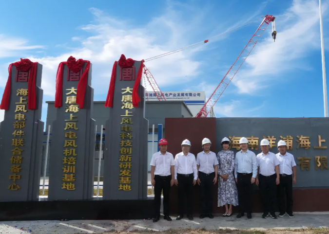 2024年8月30日,大唐海南海上风电事业部在海南洋浦海上风电产业园举行海南海上风电部件联合储备中心、大唐海上风电风机培训基地、大唐海上风电科技创新研发基地揭牌仪式。大唐海南公司党委委员、副总经理张燕京,东方风电党委书记、董事长尹守军,洋浦国际首席技术官张庆毅,东方风电党委委员、副总经理刘世洪及相关供应链企业负责人出席并见证揭牌。