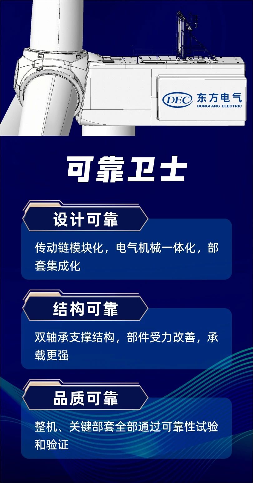 东方风电自主研发的18MW半直驱海上风电机组,具有高发电性能、高可靠性、高智能和优异的环境适应性等特点。该机型样机已并网投运并实现满功率运行,是目前全球在运单机容量最大的海上风电机组。全球首个18兆瓦批量化海上风电场——华润连江外海海上风电场项目计划安装39台东方风电18MW风电机组。