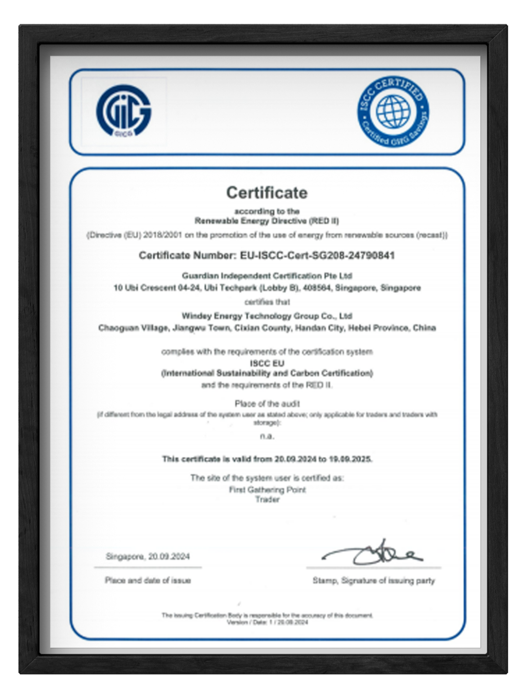 ISCC EU证书