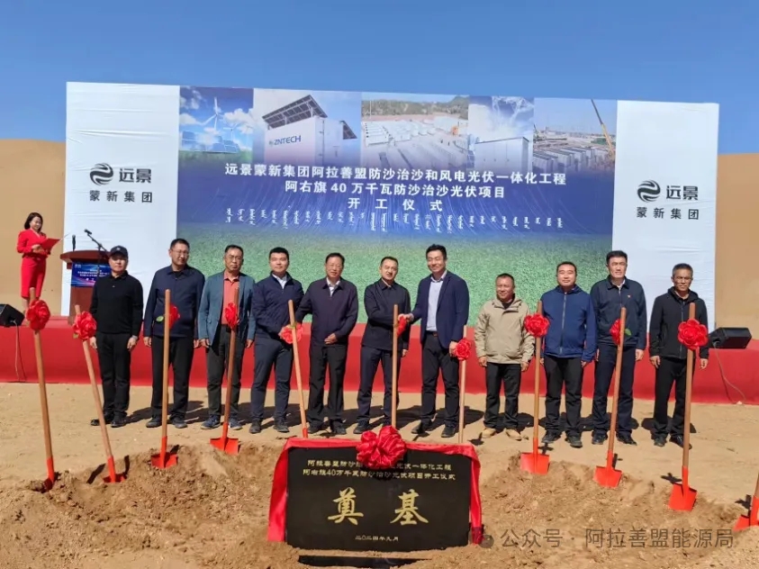 2024年9月25日,远景蒙新集团阿拉善盟防沙治沙与风电光伏一体化项目正式开工。