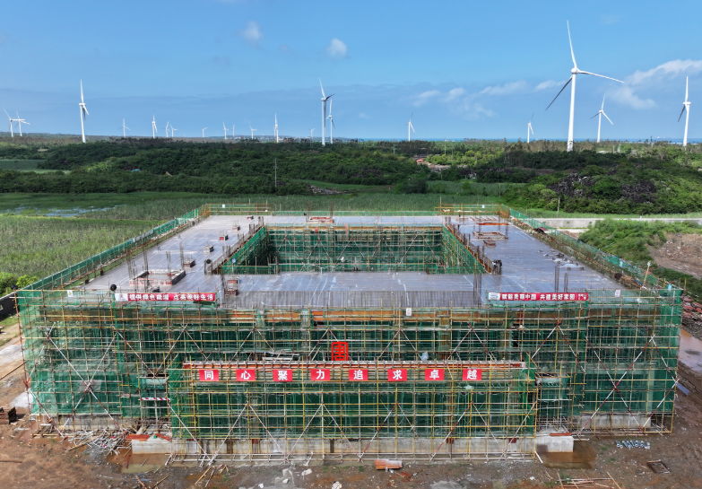 2024年9月25日,随着220kV线路控制主楼最后一方混凝土振捣完毕,大唐儋州120万千瓦海上风电项目陆上集控中心主楼主体结构成功封顶。