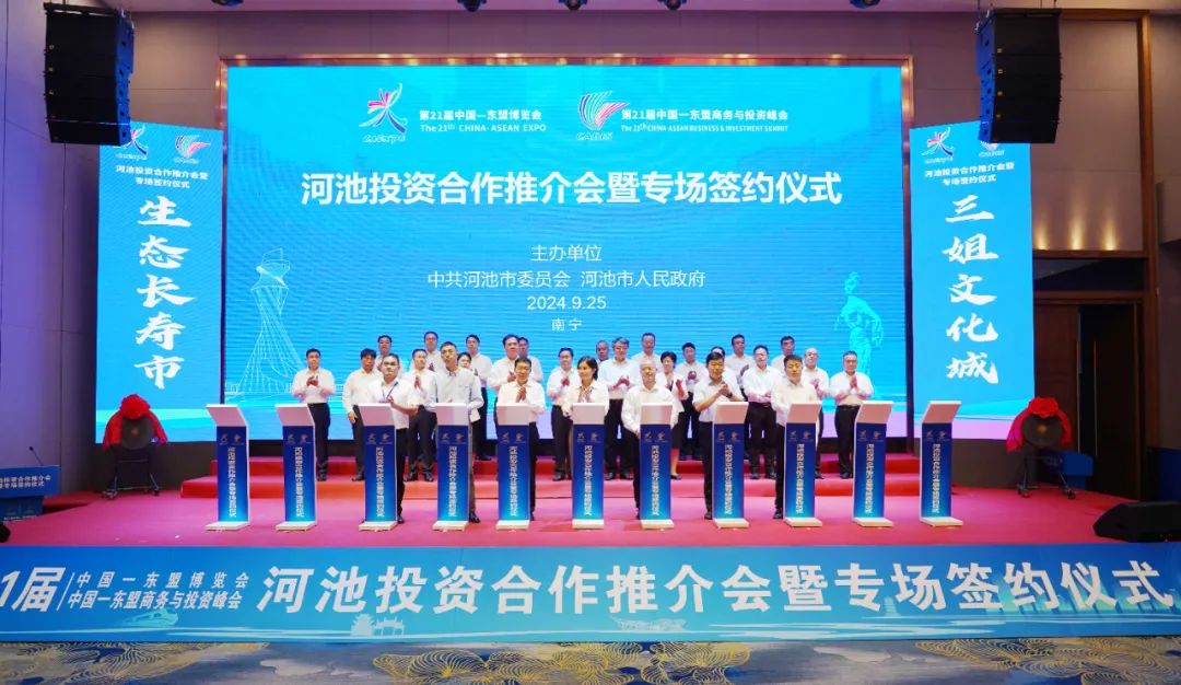 9月24日,第二十一届中国—东盟博览会、中国—东盟商务与投资峰会在南宁国际会展中心开幕。桂林市代表团参加开幕式和招商引资项目签约仪式等系列投资贸易活动,并签约恭城低风速风电场、水段风电场项目。