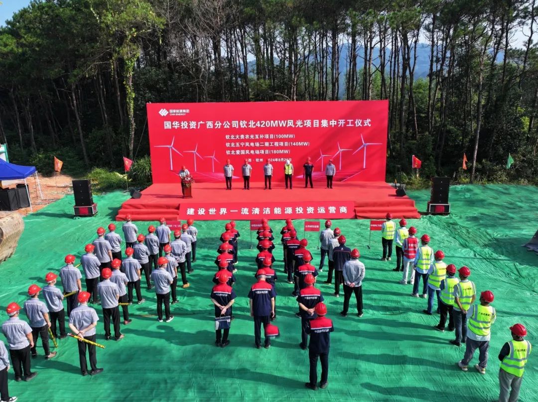 9月26日,国华投资广西分公司的钦北爱国180兆瓦风电项目、钦北五宁二期140兆瓦风电项目与钦北大贵100兆瓦农光互补项目集中举行开工仪式,标志着该公司在钦州市钦北区的项目全部开工建设。