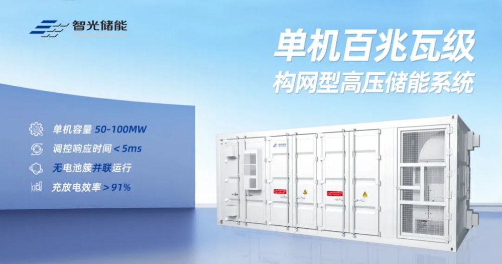 项目风电场总装机容量为100MW,配置了由智光储能提供的35kV自同步电压源高压直挂储能系统(即构网型级联高压储能系统)。