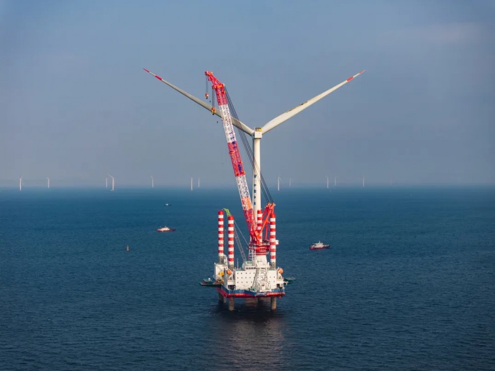 9月26日,由中国铁建港航局承建的华能大连市庄河海上风电场址Ⅳ2项目3#号风机第三支叶片的顺利摘钩,标志着该项目主体工程圆满完成,25台海上风电机组矗立在黄海海面,为实现辽宁省首个平价海上风电项目全容量并网打下坚实基础。