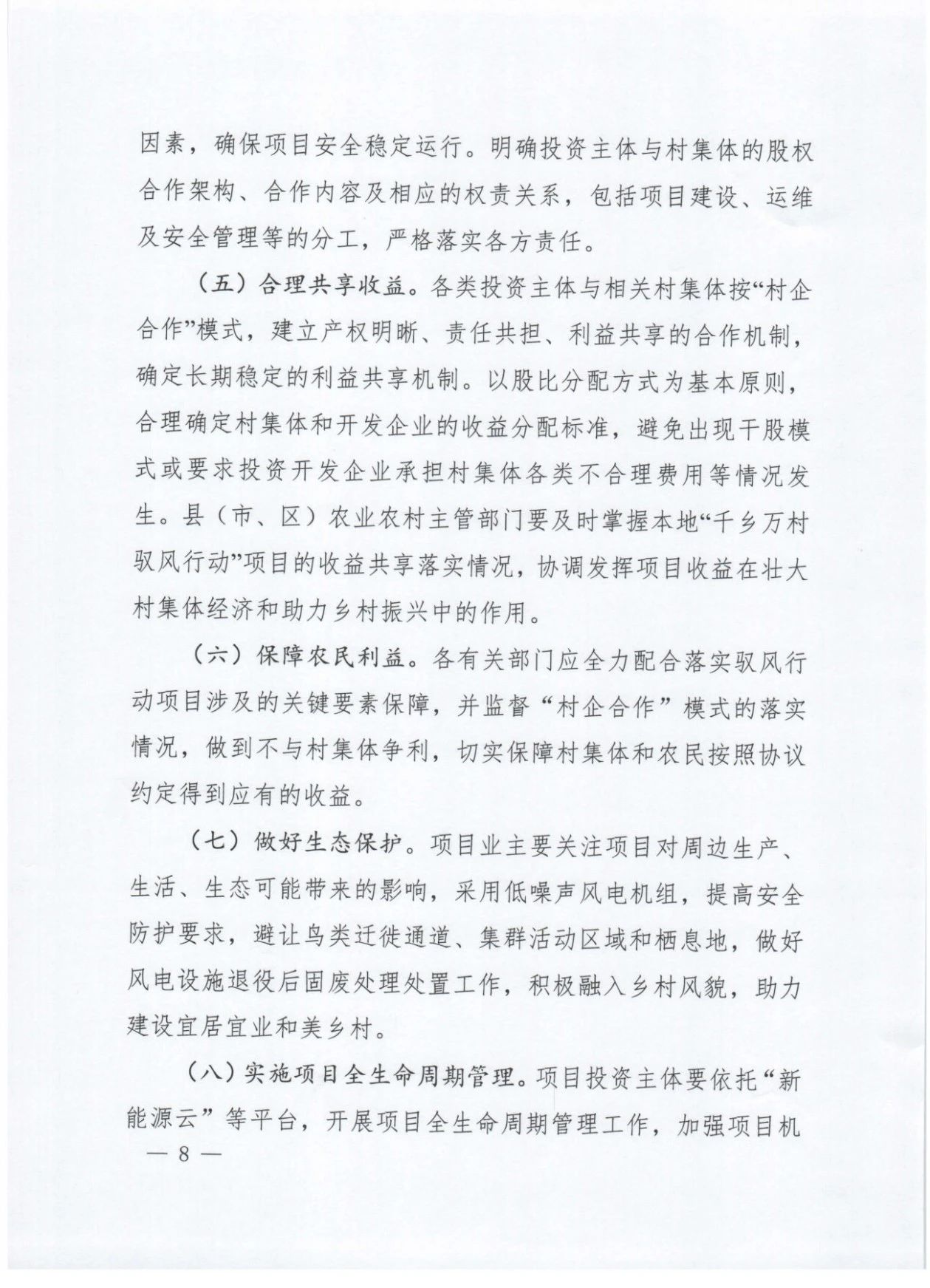 保障农民利益。各有关部门应全力配合落实驭风行动项目涉及的关键要素保障,并监督“村企合作”模式的落实情况,做到不与村集体争利,切实保障村集体和农民按照协议约定得到应有的收益。