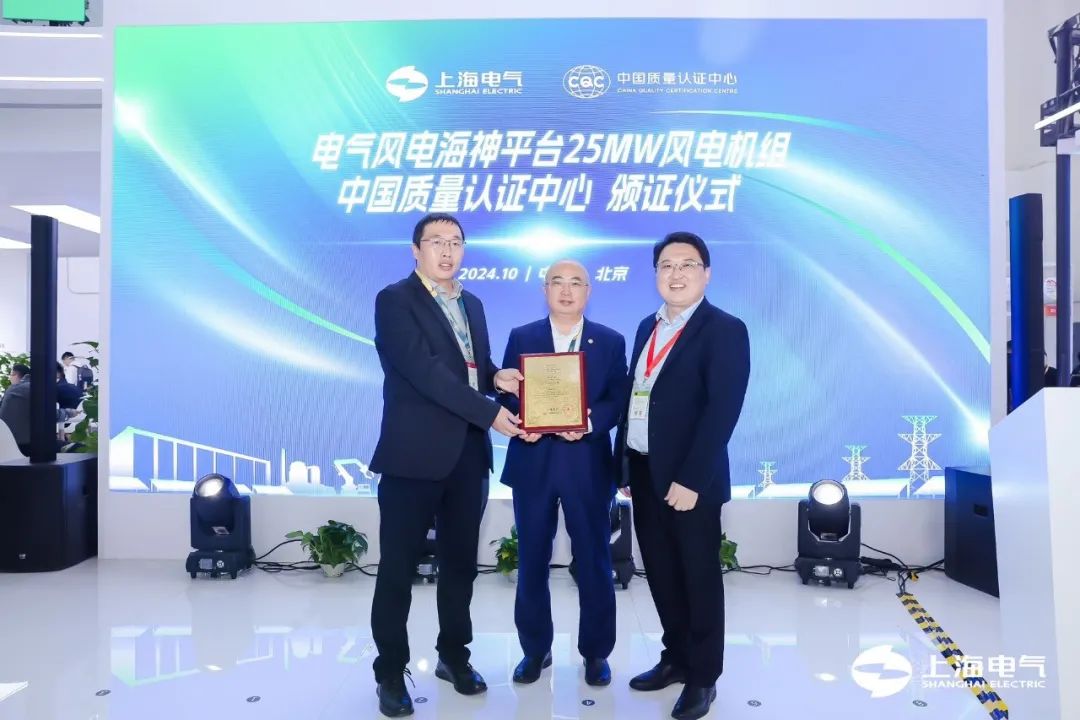 向电气风电海神平台25MW风机产品颁发产品设计认证证书
