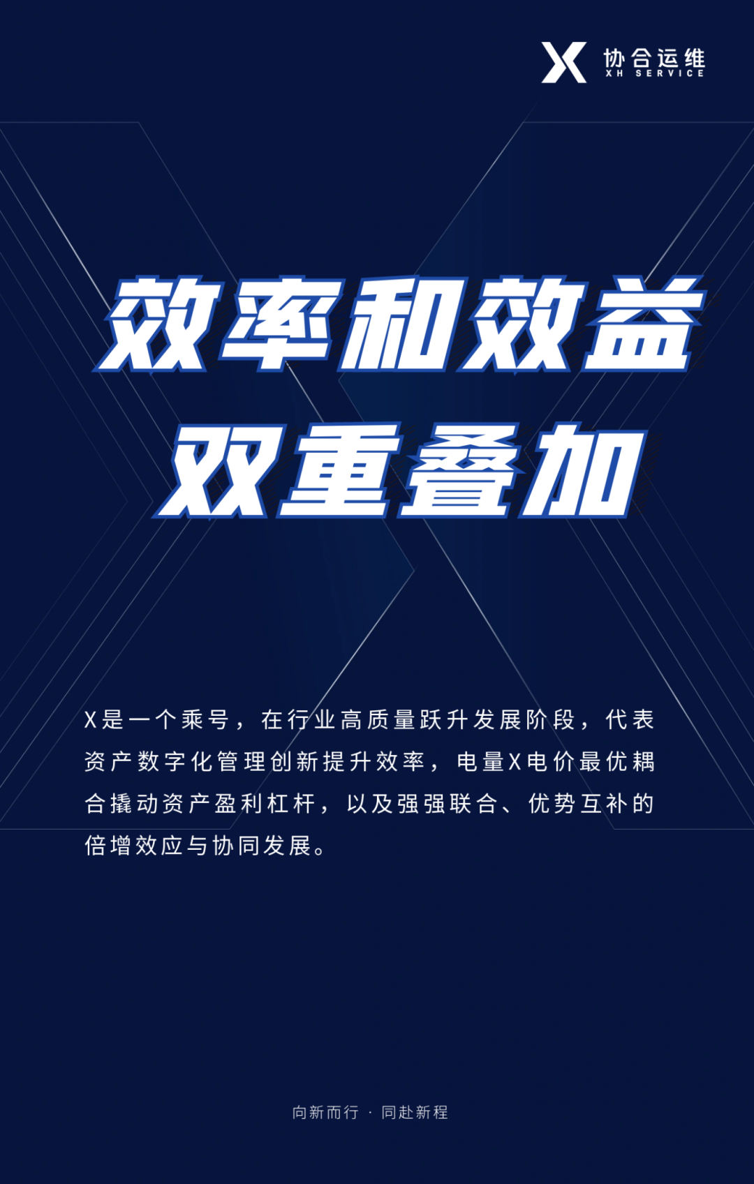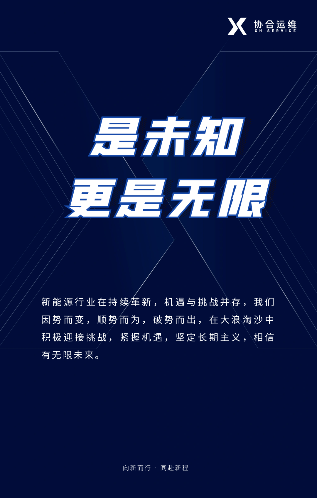 新标识中的“X”,象征着协合运维所秉持的“受人之托,忠人之事,勤勉尽责”“与客户、员工、伙伴共同成长”“专注思考,开拓视野,持续创新”的企业价值观。自2007年成立以来,协合运维始终不忘初心,在新能源后市场领域深耕细作,有力保障了服务规模快速增长下的高效率、品质化服务,持续为客户创造价值。